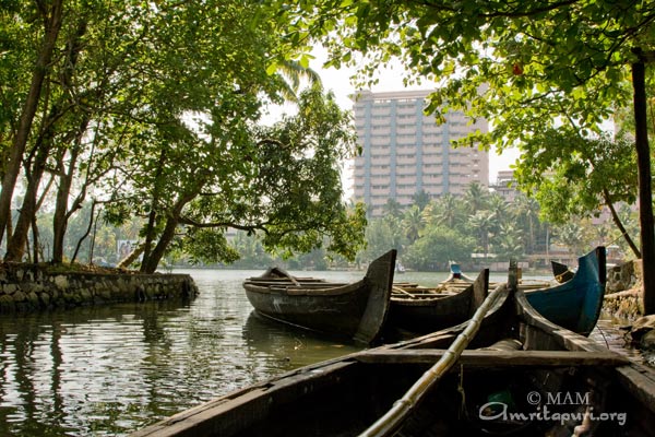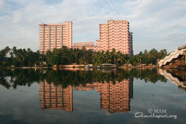 Amritapuri, Ammas ashram, är byggt på den mark där Amma föddes. I dag är det huvudkvarteret för Ammas världsvida mission och det andliga hemmet för hennes monastiska lärjungar och för de hundratals hängivna som lever där. Alla som bor i Amritapuri har ägnat sina liv åt den andliga vägen och åt att tjäna världen. Varje dag kommer Ammas barn från hela Indien och från många andra länder hit för att uppleva Ammas darshan. Amma tar emot var och en, lyssnar till deras bekymmer, tröstar, uppmuntrar och ger deras liv ny riktning.